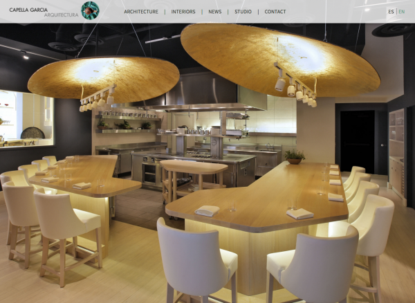 La pàgina corporativa de l'estudi d'arquitectura Capella Garcia on predominen les imatges a tota pantalla.